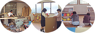 子育て支援事業・にこにこ広場[おぉきくなぁれ]の施設です。家具など、会員の手作りでつくりあげた施設です。◎詳しくは>>子育て支援事業[おぉきくなぁれ] |