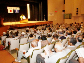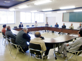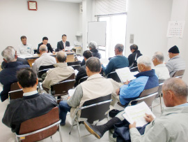 毎年草刈作業中に起こる飛石で車や家の窓ガラスを破損する事故が多発しています。事故の状況や原因を、草刈に従事している会員同士で共有することで、事故防止につなげることがこの講習の目的です。草刈の就業を希望する会員は受講を義務付けています。(平成26年6月及び11月に開催)