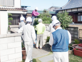 | 安全就業委員会の委員が、毎月1回剪定作業及び草刈作業をしている現場に行き、ヘルメット等の安全器具を正しく着用しているか、脚立や草刈機等を安全に使用しているか等を細かくチェックしています。