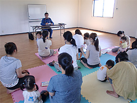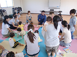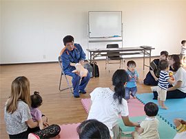| 日 時:平成22年9月14日(火) 11:00〜(約1時間) 場 所:にこにこひろば おぉきくなぁれ(愛媛県今治市喜田村8丁目4-48) 演 題:「乳幼・少児の事故と応急処置について」 講 師:今治消防本部 消防課 課長補佐 池田久志 受講者:13組の親子 |