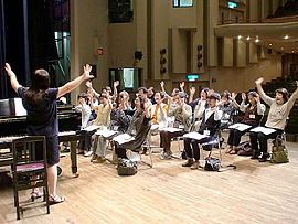 ![]() ▲大きな声で歌うと自然に笑顔に。 |