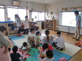 | ■「ドクターとゆっくり話そう」の講習会を開催しました。■ 平成24年9月18日(火)に、「ドクターとゆっくり話そう」と題して、愛媛県立今治病院小児科の医師 三木崇弘先生に「感染症と便秘」について講習をしていただきました。 NPO今治センターを通じて、ボランティアで来てくださいました。 子育て中のお母さん達が普段から疑問に思っていることや、不安に思っていることに対する質問が次々と出てきて、とても有意義な時間となりました。 |
