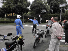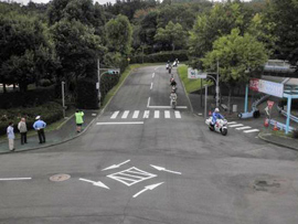 ![]() ▲白バイの先導で、公園内を安全に走りました。 |