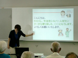 | 日 時:平成27年8月28日(金) 9:30〜11:30 場 所:旧今治コンピュータカレッジ 会議室 講 師:有限会社 能力開発システム研究所 代表取締役 木曽千草/尾山紀子 受講者:30名 |