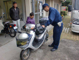 | ■交通安全講習会を開催しました。■ 平成27年11月25日(水)に、愛媛県警と今治警察署及び今治交通安全協会のご協力をいただき、交通安全講習会を開催しました。 今治警察署 交通課の池口上席係長の話を聞いた後、自動車、バイク、自転車に分かれて実習を行いました。 バイクと自転車は、雨のため走行講習を中止し、整備点検に重点を置いた講習となりました。高齢者の交通事故が多発する中、交通安全の正しい知識を身に付けて安全に気を付けることが、とても重要なことだと学びました。 |