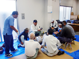 | 日 時:平成30年8月13日(月) 8:00〜11:00 場 所:シルバー人材センター 会議室 講 師:センター会員 阿部啓一郎さん 楠橋鹿都久さん 受講者:9名 |