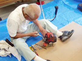 | ■草刈安全講習会を実施しました。■ 草刈作業に従事している会員の皆さんがお盆休みを利用して集まり、草刈機のメンテナンスの仕方について自主勉強会を開催しました。 「機械の調子が悪いと、エンジンをかけるだけで疲れてしまって、仕事がうまく進まない」 「自分で調整することが出来ないので、修理や整備を全部業者任せにしてしまって、費用がかかる」 「草刈機の仕組みをもっと知りたい」 などの声が会員同士の就業の中から上がったことで、今回の勉強会が実現しました。 機械の整備は、安全就業や仕事の効率向上にもつながることから、会員の皆さんは熱心に話を聞いたり意見を出し合ったりしながら、自分の機械を念入りに整備していました。 最後に「非常に参考になった。今後もこういった勉強会を続けてほしい。」といった意見が会員の皆さんから出され、好評な会となりました。 |