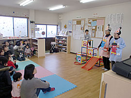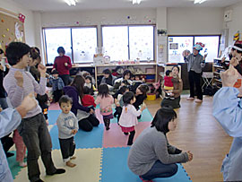 | 日 時:平成22年2月2日(火) 場 所:にこにこ広場「おぉきくなぁれ」 (今治市喜田村8丁目4-48) ご参加者:18組の親子 |