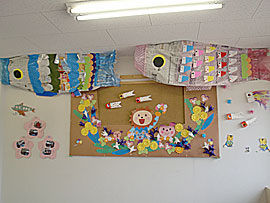 ![]() ▲子供の日について、お勉強。先生はスタッフです。 |