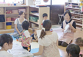 ![]() ▲スタッフが子供の頃の話にお母さんも夢中で聞き入ります。 |