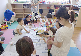 | 日 時:平成22年7月7日(水) 場 所:にこにこ広場「おぉきくなぁれ」 (今治市喜田村8丁目4-48) ご参加者:8組(18名)の親子 |