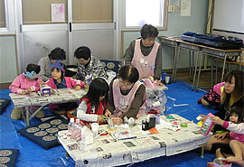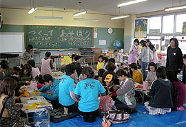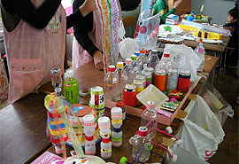 | ■「こそだてコラボ わくわくフェスタ」に参加しました。■ 平成22年10月31日(日)に、今治市が主催する「こそだてコラボ わくわくフェスタ」に参加しました。今治市内で子育て支援事業に携わる様々な施設が、日頃の活動や取組みを生かして工作やお話会などを実施し、体験型の楽しいイベントとなりました。 おぉきくなぁれでは、「かんたん!おもちゃ作り」と題して、身近にあるもので楽しく遊ぶことができるおもちゃを参加者の方に作ってもらいました。ペットボトルを使った楽器や牛乳パックを使った風船等、子供達だけではなくお父さんお母さん、お婆ちゃんお爺ちゃんまでが、目をキラキラさせながら工作する姿がとても印象に残りました。 いつもゴミになるペットボトルや牛乳パックで、とても楽しいおもちゃを簡単に作ることができ、「家でいつでも作れます!」と大変喜んでいただけました。 |