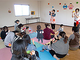 | 日 時:平成23年3月4日(金) 場 所:にこにこ広場「おぉきくなぁれ」(今治市喜田村8丁目4-48) ご参加者:21組 46名の親子 |
