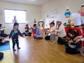 | 日 時:平成24年3月5日(月) 場 所:にこにこ広場「おぉきくなぁれ」(今治市喜田村8丁目4-48) ご参加者:21組 44名の親子 |