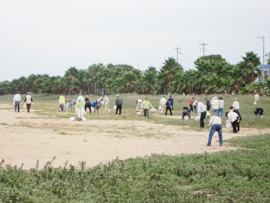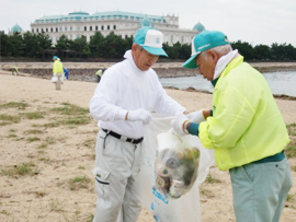 | ■イベントの様子■ 10月の「シルバー人材センター事業普及啓発促進月間」に合わせて、健康ウォーキングとボランティア清掃を行いました。このイベントは、会員の健康増進とボランティア清掃を目的としたもので、市内の街路およそ5キロのコースを清掃しながら楽しく歩くというもの です。 前日まで台風の影響が心配されましたが、ウォーキング日和となった秋空のもと、93名が参加しました。 目的地の東村海岸公園では海岸清掃を行い、たくさんのゴミを拾いました。 |